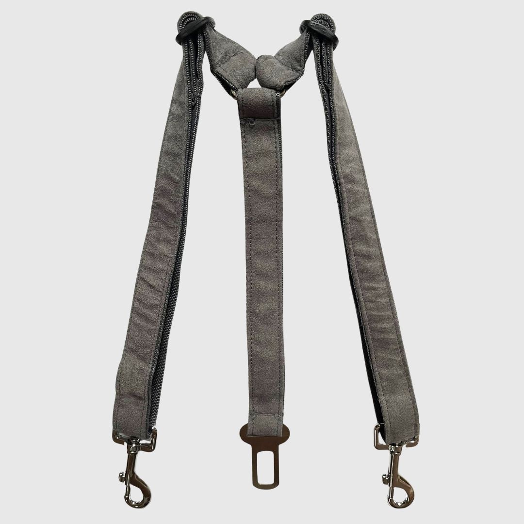 Pas bezpieczeństwa dla psa przypinamy karabińczykiem do szelek psa (nigdy do obroży), a drugą końcówkę wpinamy do gniazda pasów bezpieczeństwa w samochodzie. Regulacja długości pasa pozwala na indywidualne dopasowanie do wielkości psa. Stosowanie pasa ogranicza przemieszczanie się psa w samochodzie i zwiększa bezpieczeństwo, zapewniając mu jednocześnie komfort podczas podróży.